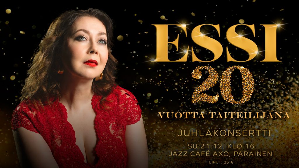 Nyt on aika juhlia kulunutta 20 vuotta pienimuotoisella konsertilla Jazz Café AXOssa. Mitä kaikkea mahtuu kahteen vuosikymmeneen? Tule kuuntelemaan lauluja ja niihin liittyviä tarinoita Essin elämän varrelta sunnuntaina 21.12. klo 16. Jokunen joululaulukin varmasti mahtuu mukaan lähestyvän juhlan kunniaksi. Liput konserttiin: 25 €.